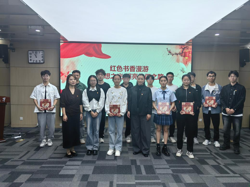 发布时间:2024-10-22红色经典记录着党的光辉历史、承载着红色革命传统,是中国共产党人宝贵的精神财富。为进一步弘扬红色文化、传承红色基因、厚植爱国情怀,2024年10月18日,电信科本科党支部与图书档案党总支第一党支部在南湖图书馆一楼图书漫游中心共同开展“红色书香漫游——理想之光 照亮信仰之路”支部共建活动,本次活动由薛路凡同志主持。